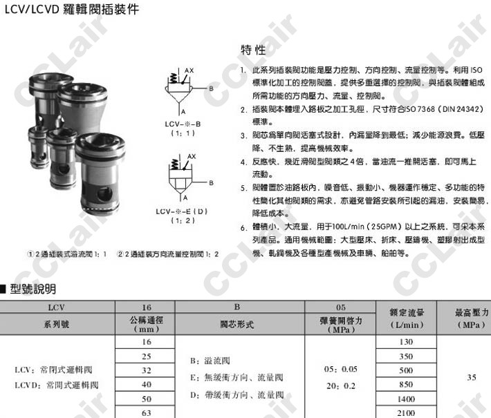 LCV-16-B-05,LCV-25,LCV-32,LCV-40,LCV-50,LCV-63,LCVD-16,LCVD-25-E-05,LCVD-32,邏輯閥插裝件