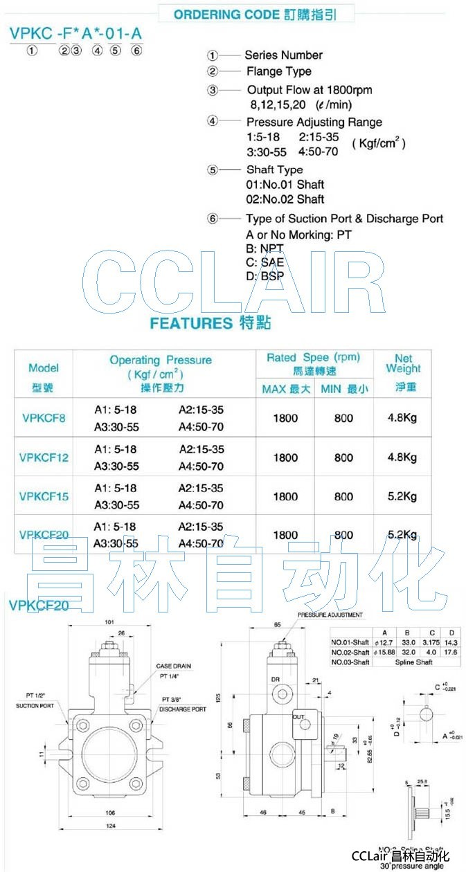 詳細(xì)信息 VPKC-F8A2-01,VPKC-F8A1-01,VPKC-F12A4-01,變量葉片泵