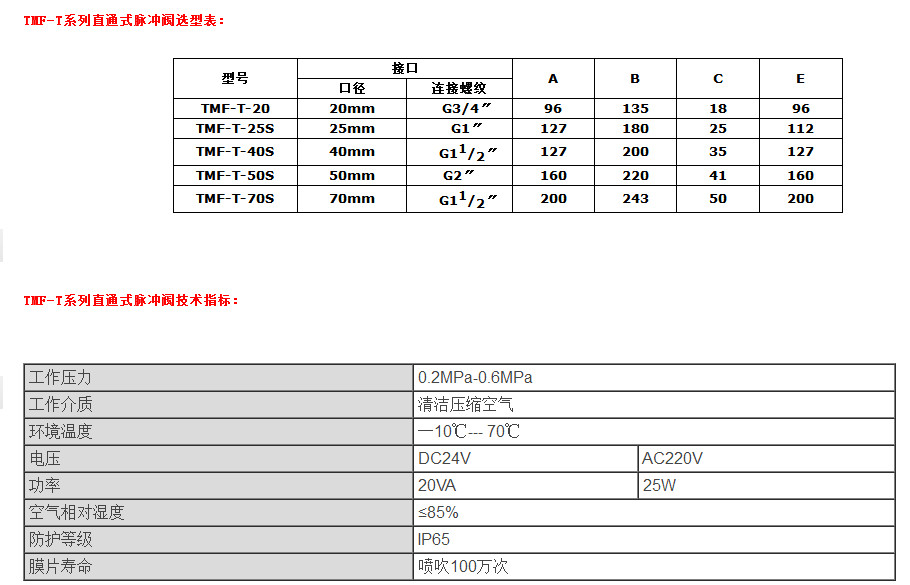詳細(xì)信息 淹沒式脈沖閥TMF-Y-50S,TMF-Y-62S,TMF-Y-76S,