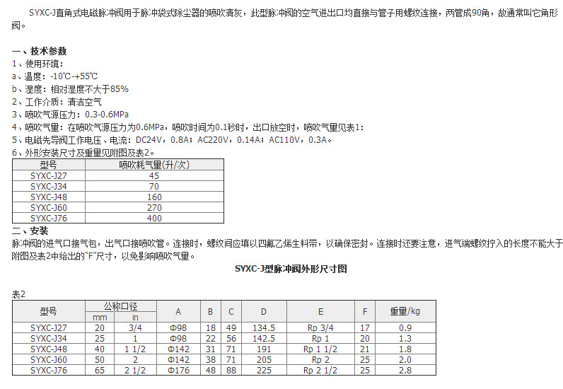 詳細信息 淹沒式脈沖閥SYXC-Y42,SYXC-Y60,SYXC-Y76,