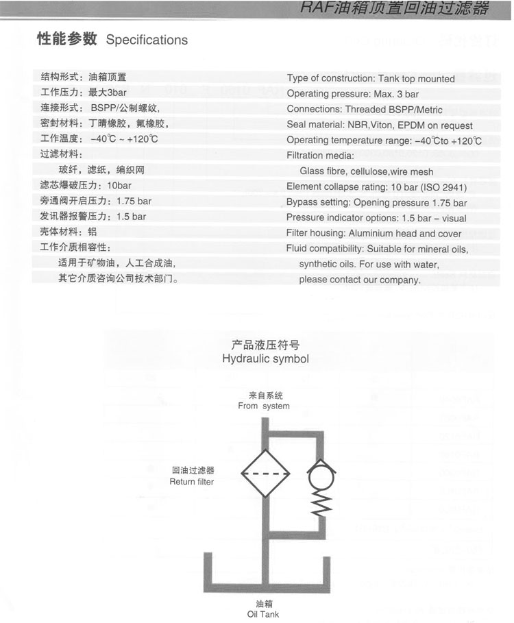 RAF0040,RAF0063,RAF0120,RAF0160,RAF0300,RAF0400,RAF0500,RAF0040P010NB08,回油過濾器