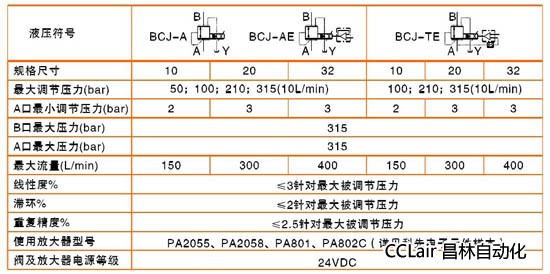 BCJ是錐閥型先導(dǎo)式比例減壓閥,閥的二次壓力與輸入電信號成正比。此類閥工作時(shí)是通過電子放大器提供比