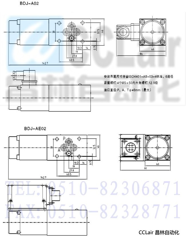 安裝界面尺寸符合I S04401-A B-03-4標(biāo)準(zhǔn),6通徑