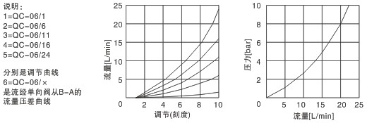 QC-06型流閥通常內(nèi)置單向閥②,以便使反向流動時的自由流動。自帶旋轉(zhuǎn)微調(diào)螺母③即可調(diào)節(jié)流量的大小,順時針轉(zhuǎn)動時又可以增大節(jié)流效果(通流口減小)。