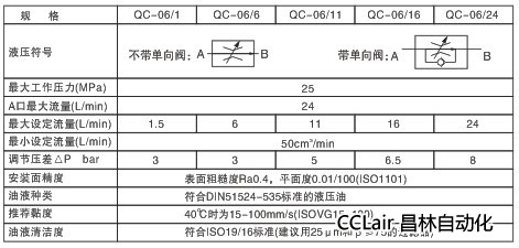 QC-06型流量閥可以與疊加板合成疊加式單向調(diào)速閥,方便在標(biāo)準(zhǔn)油路板中安裝,簡化液壓控制回路的設(shè)計。