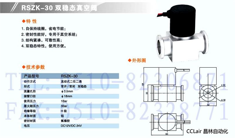 RSZK-30,直動二位二通雙穩(wěn)態(tài)真空閥
