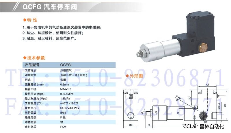 產(chǎn)品: 瀏覽次數(shù):707QCFG,直動二位三通汽車停車閥