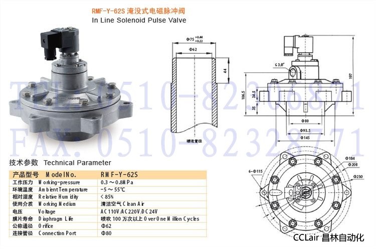 詳細(xì)信息 RMF-Y-62S,淹沒(méi)式電磁脈沖閥
