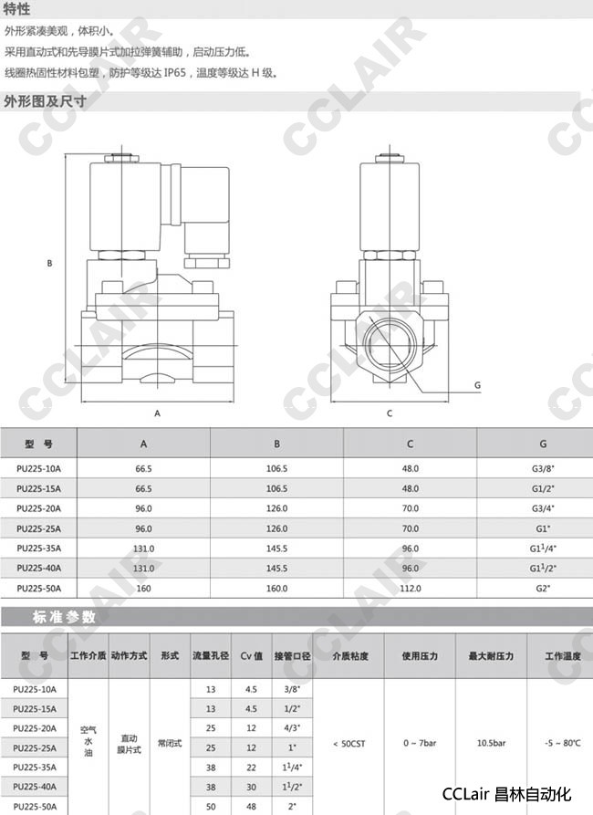 PU225-10A,PU225-15A,PU225-20A,PU225-25A,PU225-35A,PU225-40A,PU225-50A,二位二通電磁閥
