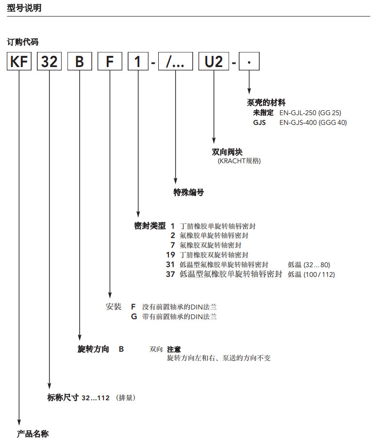 KF32BF1,KF40BG1,KF50BF2,KF63BG2,KF80BF7,KF100BG7, kracht齒輪輸送泵