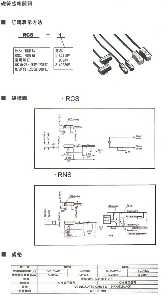 詳細信息 RCS-1,RCS-2,RNS-1,RNS-2,磁簧感應(yīng)開關(guān)