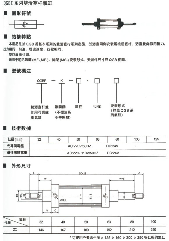 詳細(xì)信息 QGBE-K-32,QGBE-K-40,QGBE-K-50,QGBE-K-63,QGBE-K-80,雙活塞桿氣缸