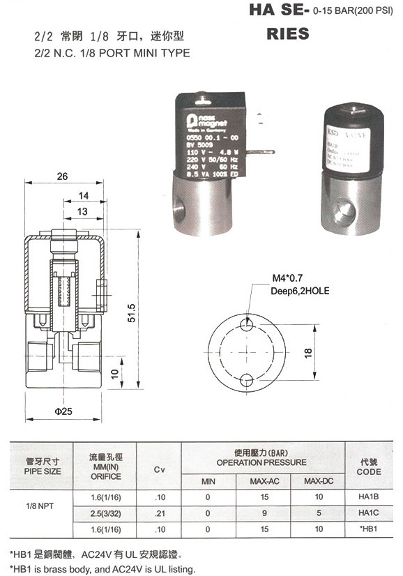 HA1B-R-AC24,HA1B-V-AC110,HA1C-R-AC220,HA1C-P-DC24,電磁閥