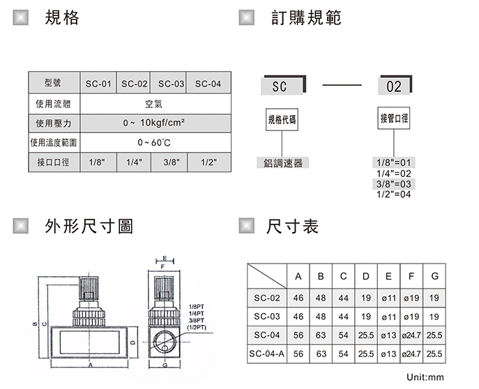 型號: SC-01,SC-02,SC-03,SC-04