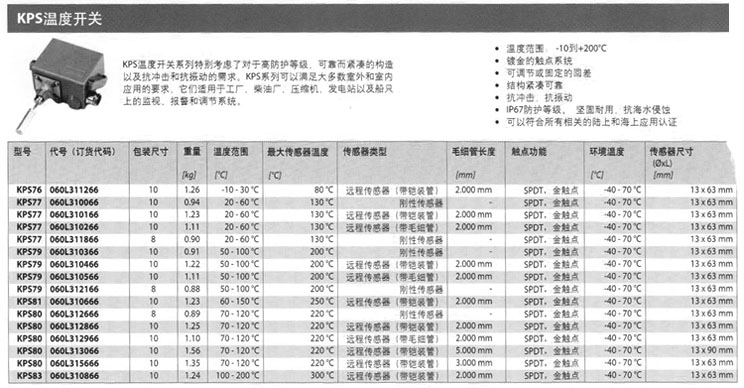 詳細(xì)信息 KPS76,KPS77,KPS79,KPS81,KPS80,KPS83,溫度開關(guān)