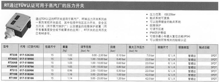 詳細信息 RT33B,RT30AS,RT30AB,RT30AW,RT31S,RT19B,RT19W,壓力開關(guān)