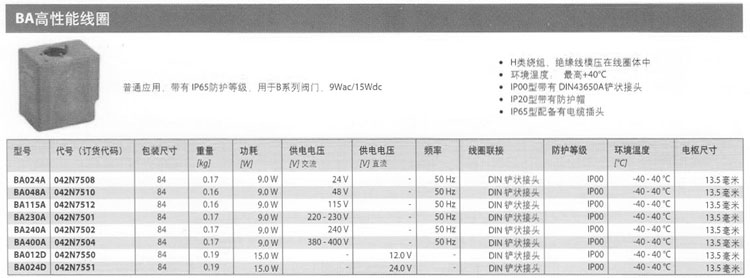 BA024A,BA048A,BA115A,BA230A,BA240A,BA400A,BA012D,BA024D,電磁閥線圈