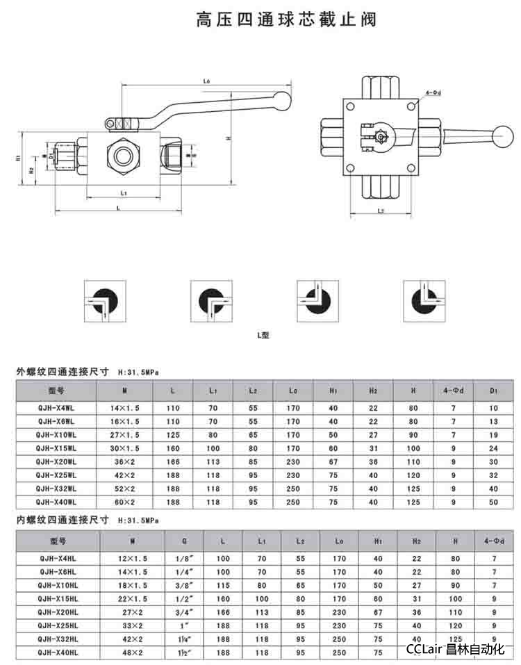 QJH-X4WL,QJH-X6WL,QJH-X10WL,QJH-X15WL,QJH-X20WL,高壓四通球芯截止閥