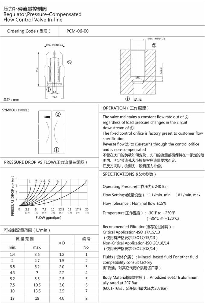 詳細(xì)信息 PCM-06-00,壓力補(bǔ)償流量控制閥