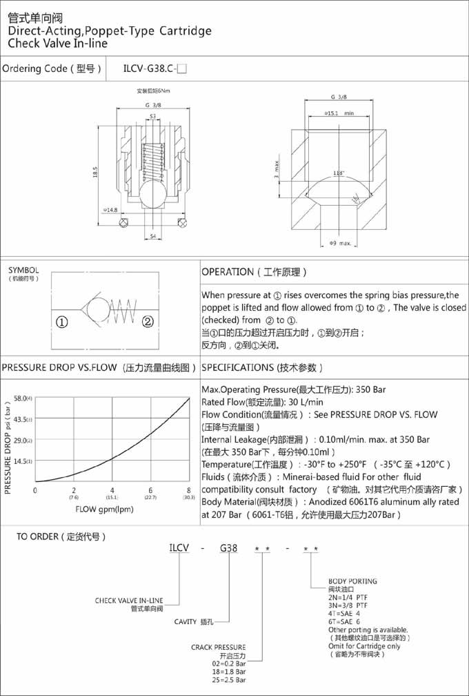 詳細信息 ILCV-G38.C-02,ILCV-G38.C-18,ILCV-G38.C-25,管式單向閥