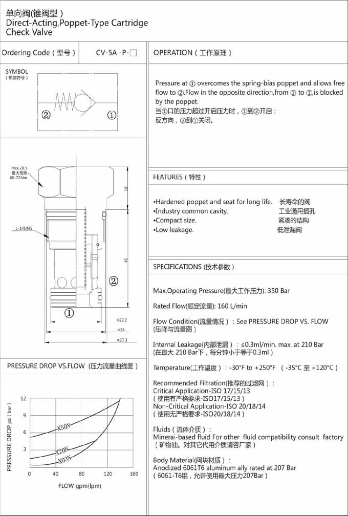 詳細信息 CV-5A-P-03,CV-5A-P-10,CV-5A-P-20,CV-5A-P-35,CV-5A-P-50,單向閥