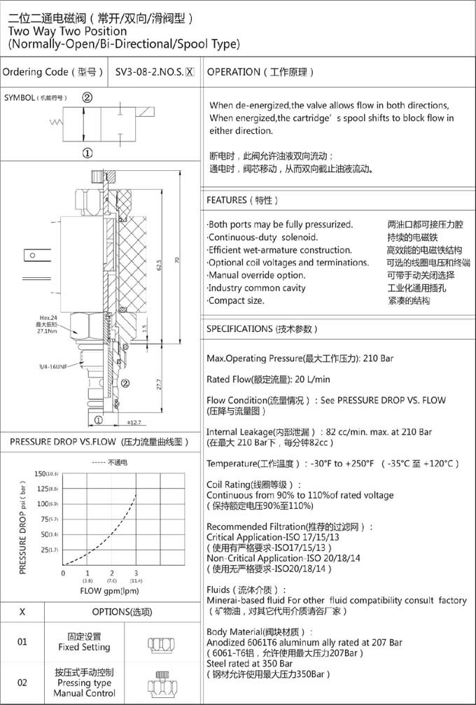 瀏覽次數:439SV3-08-2NOS,二位二通電磁閥 |