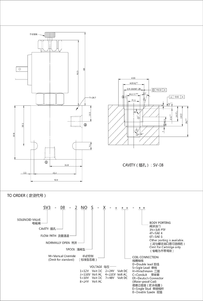 SV3-08-2NOS,二位二通電磁閥