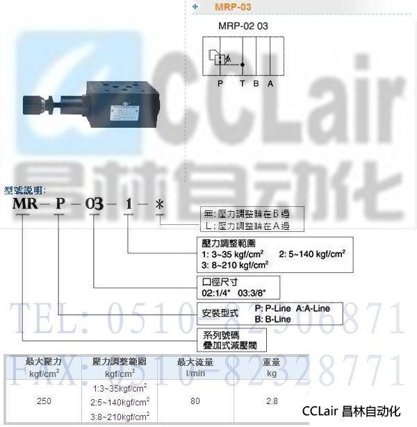 詳細(xì)信息 MRP-03-1,MRP-03-1-L,MRP-03-2,MRP-03-2-L,疊加式減壓閥