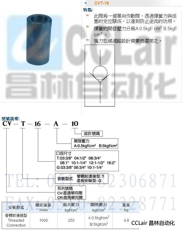 詳細(xì)信息 CVT-16-B-10,CVT-16-B-10,單向閥