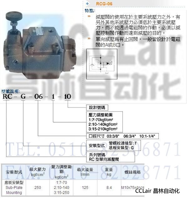 RCG-06-1-10,RCG-06-2-10,RCG-06-3-10,單向減壓閥