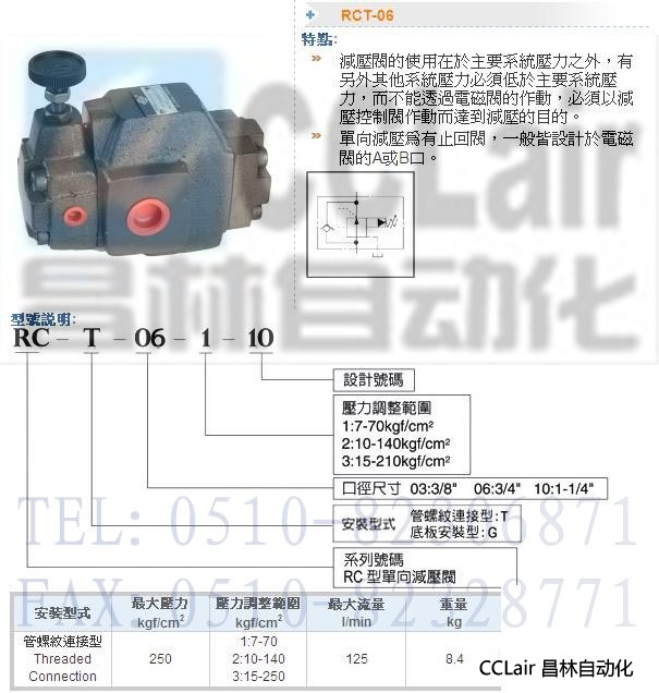RCT-06-1-10,RCT-06-2-10,RCT-06-3-10,單向減壓閥