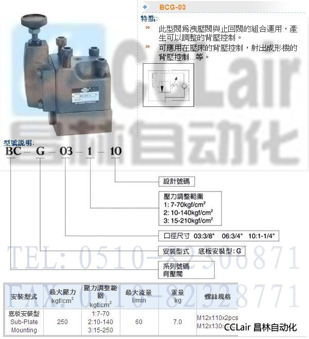 BCG-03-1-10,BCG-03-2-10,BCG-03-3-10,背壓閥