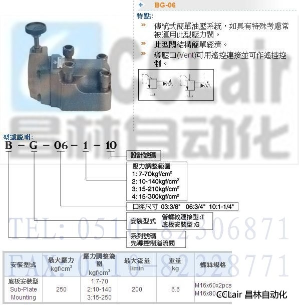 詳細(xì)信息 BG-06-1-10,BG-06-2-10,BG-06-3-10,BG-06-4-10,溢流閥