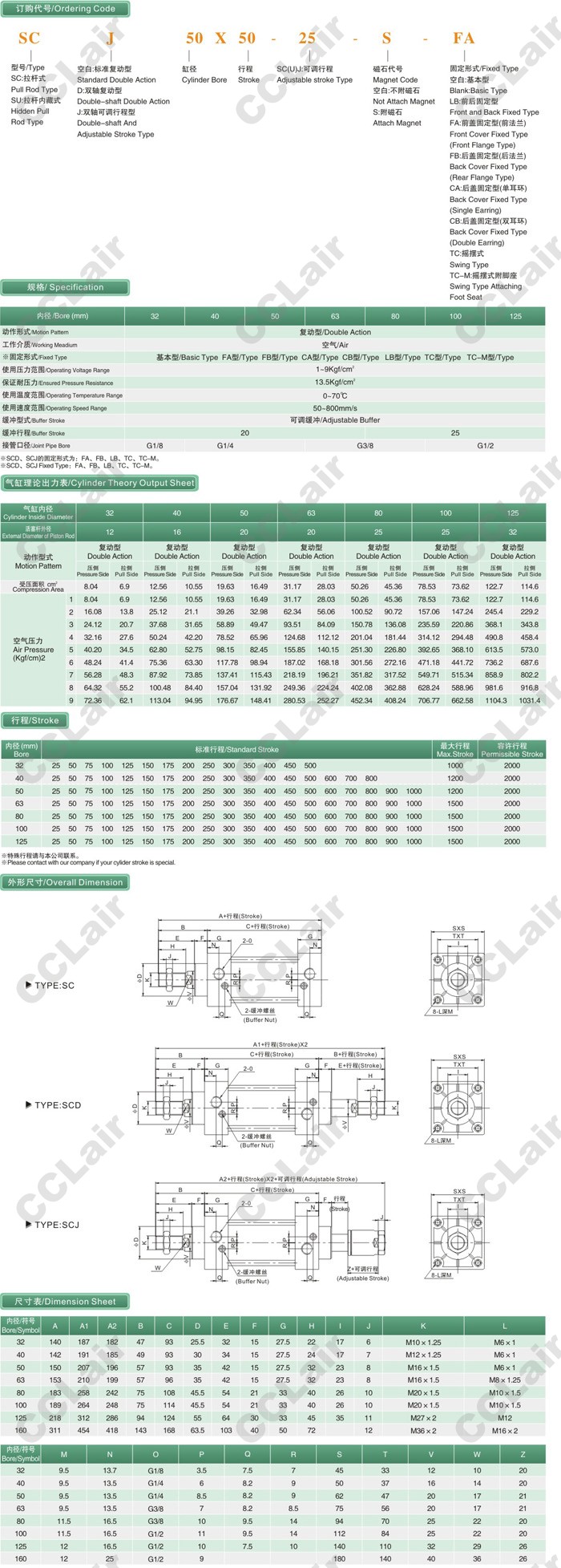 SUJ32,SUJ40,SUJ50,SUJ63,SUJ80,SUJ100,SUJ125,SUJ32×25,SUJ63×50,SUJ125×500,標準氣缸