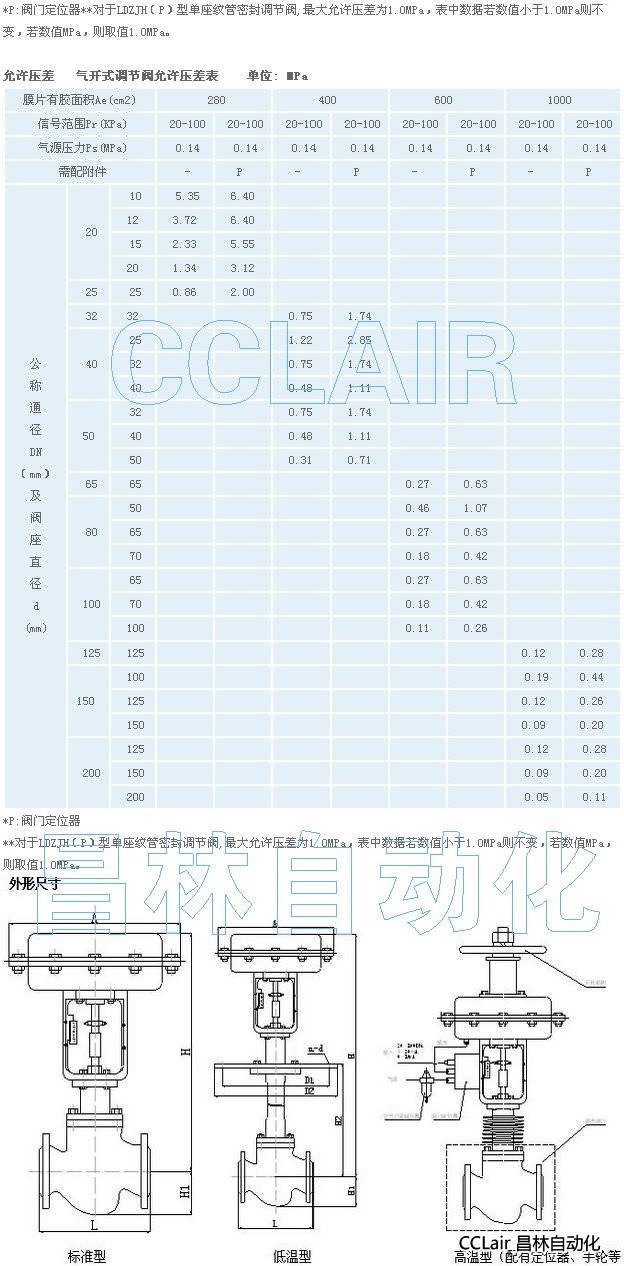 | 附件:電氣定位器、空氣過濾減壓器、鎖氣保位閥、電磁閥 |