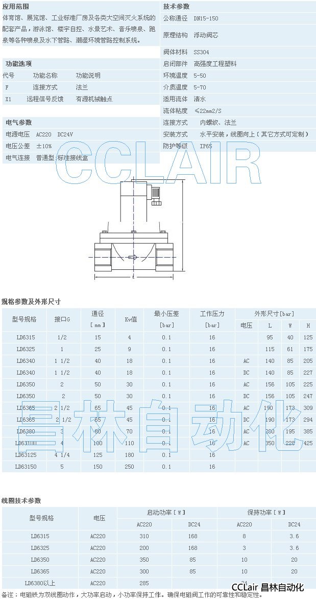 詳細(xì)信息 LD6315,LD6325,LD6340,LD6350,LD6365,LD6380,LD63100,LD63125,LD63150,消防雨淋專(zhuān)用電磁閥