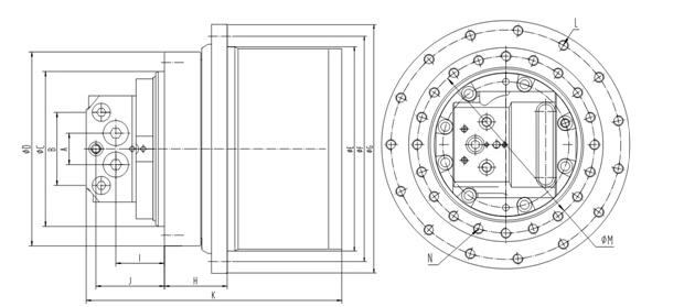 本產品為馬達與減速機一體的行走裝置。由集成于減速機內部的雙排量軸向柱塞馬達、行走減速器組成。馬達內置安全閥、防反轉閥、停車制動裝置及高低二檔轉換裝置,它的特點是:傳動比范圍大、結構緊湊、工作效率高、可靠性強、體積小、運動平穩(wěn)、噪音低等,同時具有多級安全保護、使用壽命長等優(yōu)點。適用于液壓履帶驅動行走裝置。