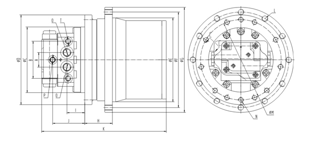 本產(chǎn)品為馬達(dá)與減速機(jī)一體的行走裝置。由集成于減速機(jī)內(nèi)部的雙排量軸向柱塞馬達(dá)、行走減速器組成。馬達(dá)內(nèi)置安全閥、防反轉(zhuǎn)閥、停車制動(dòng)裝置及高低二檔轉(zhuǎn)換裝置,它的特點(diǎn)是:傳動(dòng)比范圍大、結(jié)構(gòu)緊湊、工作效率高、可靠性強(qiáng)、體積小、運(yùn)動(dòng)平穩(wěn)、噪音低等,同時(shí)具有多級(jí)安全保護(hù)、使用壽命長等優(yōu)點(diǎn)。適用于液壓履帶驅(qū)動(dòng)行走裝置。