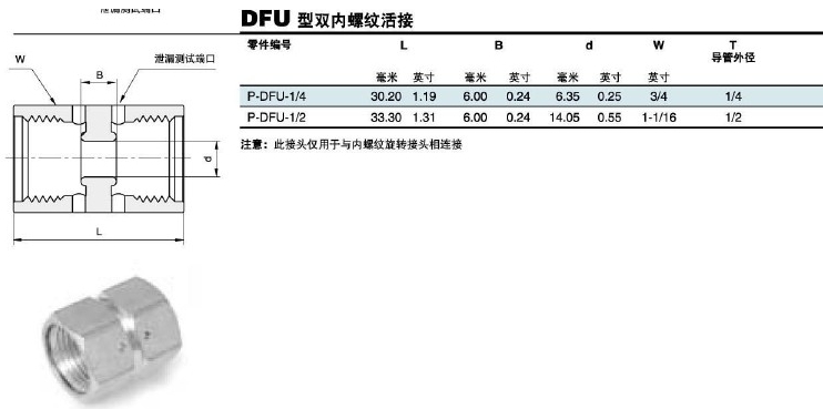 詳細(xì)信息 P-DFU-1/4,P-DFU-1/2,雙內(nèi)螺紋活接頭