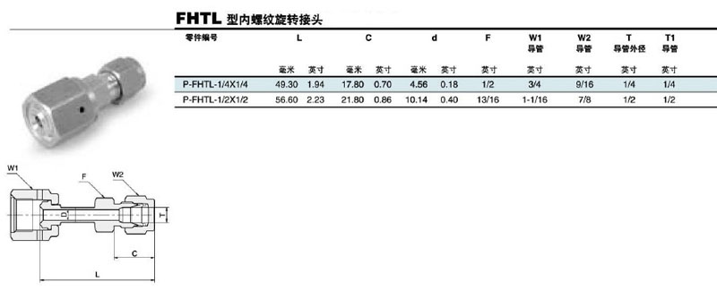 型號: P-FHTL-1/4*1/4,P-FHTL-1/2*1/2