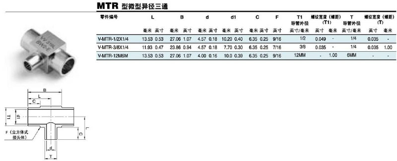 詳細信息 V-MTR-1/2*1/4,V-MTR-3/8*1/4,V-MTR-12M6M,微型異徑三通