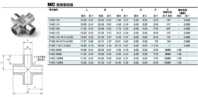 V-MC-1/8,V-MC-1/4,V-MC-3/8,V-MC-1/2,V-MC-3/4,V-MC-1,V-MC-6MM,V-MC-8MM,微型四通接頭