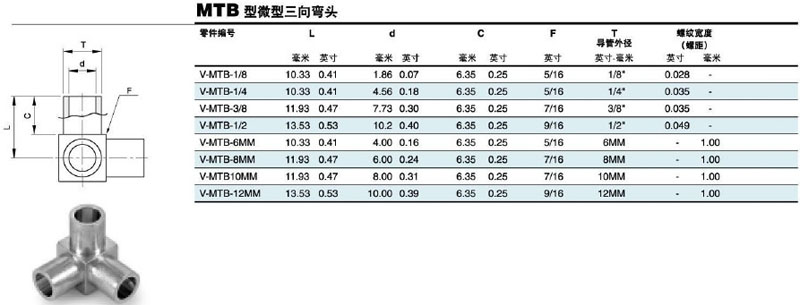 V-MTB-1/8,V-MTB-1/4,V-MTB-3/8,V-MTB-1/2,V-MTB-6MM,V-MTB-8MM,V-MTB-10MM,V-MTB-12MM,微型三向彎頭