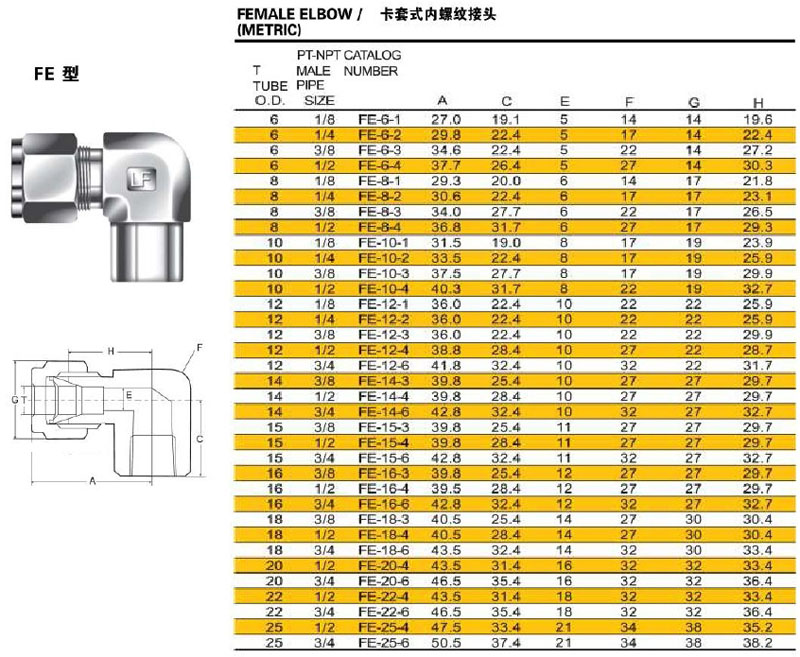 FE-6-1,FE-8-1,FE-10-1,FE-12-4,FE-20-4,FE-22-4,FE-25-6,卡套式內(nèi)螺紋接頭