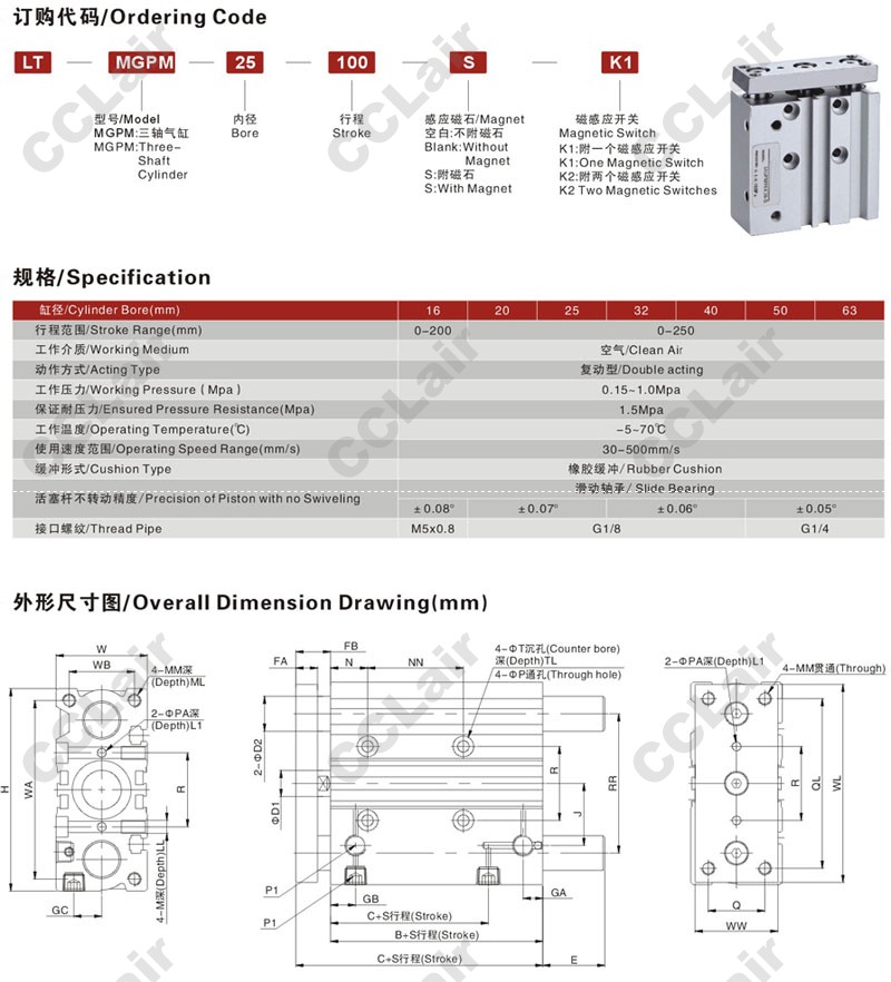 LTMGPM-16,LTMGPM-20,LTMGPM-25,LTMGPM32,LTMGPM40,LTMGPM-50,LTMGPM-63,LTMGPM63×100,三軸氣缸 |