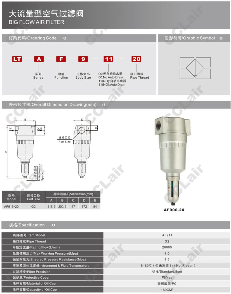 產(chǎn)品: 瀏覽次數(shù):809AF911-20,大流量型空氣過濾閥
