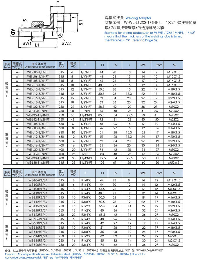 W-WE-L06-1/4NPT,W-WE-L08-1/4NPT,W-WE-L10W-WE-S06R1/4K,-1/4NPT,W-WE-L12-1/4NPT,W-WE-L13-3/8NPT,W-WE-L15-1/2NPT,