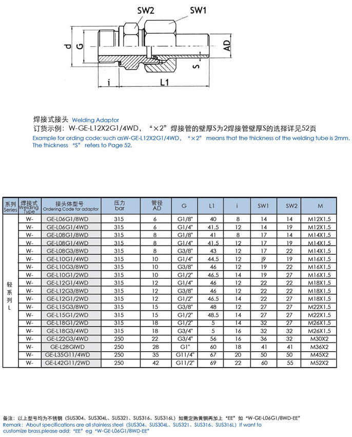 詳細(xì)信息 W-GE-L06G1/8WD,W-GE-L18G3/4WD,W-GE-L22G3/4WD,W-GE-L35G11/4WD,直通終端焊接式接頭
