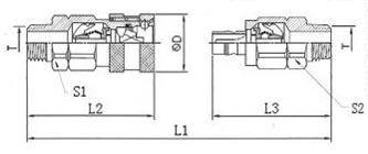 | 昌林液壓 | 國(guó)際標(biāo)準(zhǔn) | L1 | L2 | L3 | ØD | S1 | S2 | T | 母接頭編號(hào) | 公接頭編號(hào) |