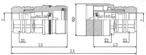 | 昌林液壓 | 國(guó)際標(biāo)準(zhǔn) | L1 | L2 | L3 | ØD | S1 | S2 | T | 母接頭編號(hào) | 公接頭編號(hào) |